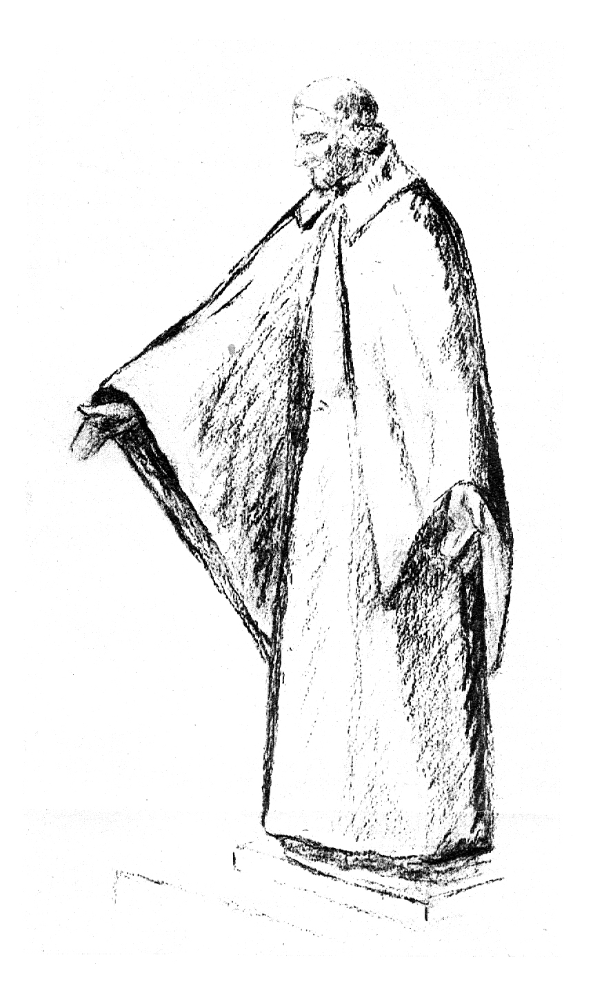 Ink drawing, Vincent de Paul statue sketch for St. Lazare memorial, 1967