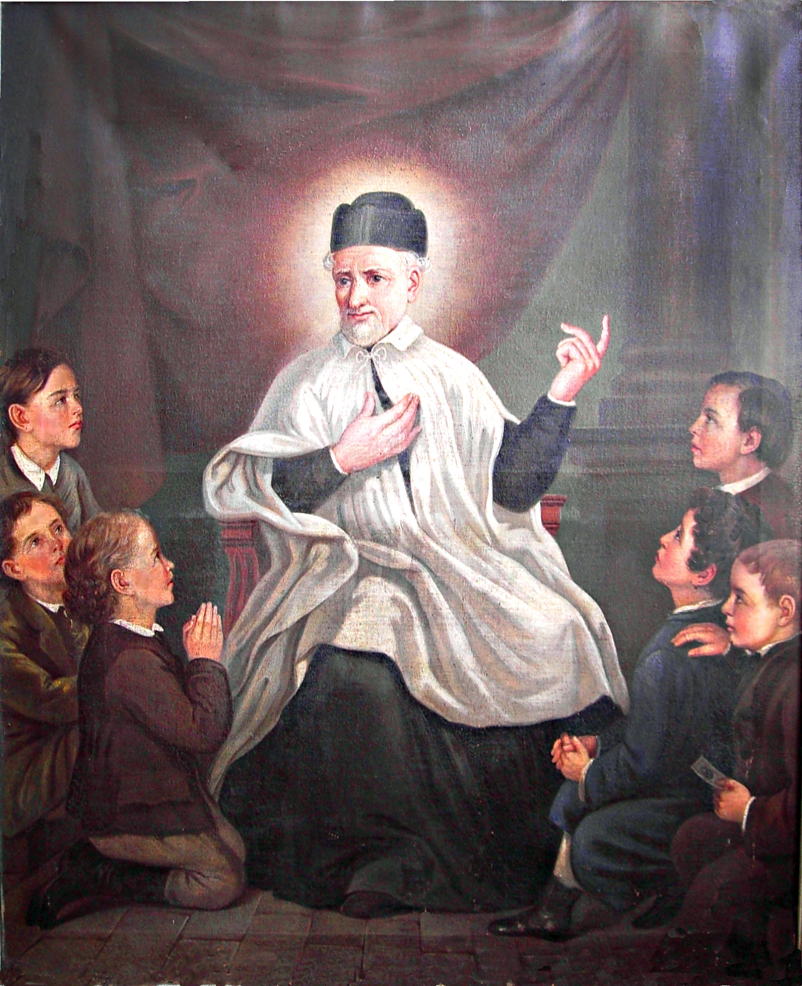 Vincent de Paul teaching boys; original in Daughters of Charity house, ul. Św. Filipa 19