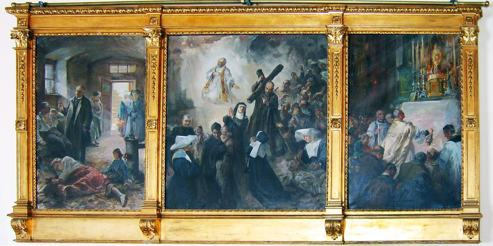 Framed triptych; artist: Stanisław Kaczor Batowski, early 20th century; Latin title from Litany of St. Vincent