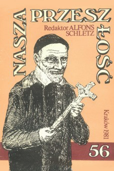 Vincent de Paul, standing, cassock, mantle, skullcap, presenting crucifix; magazine cover, 1981