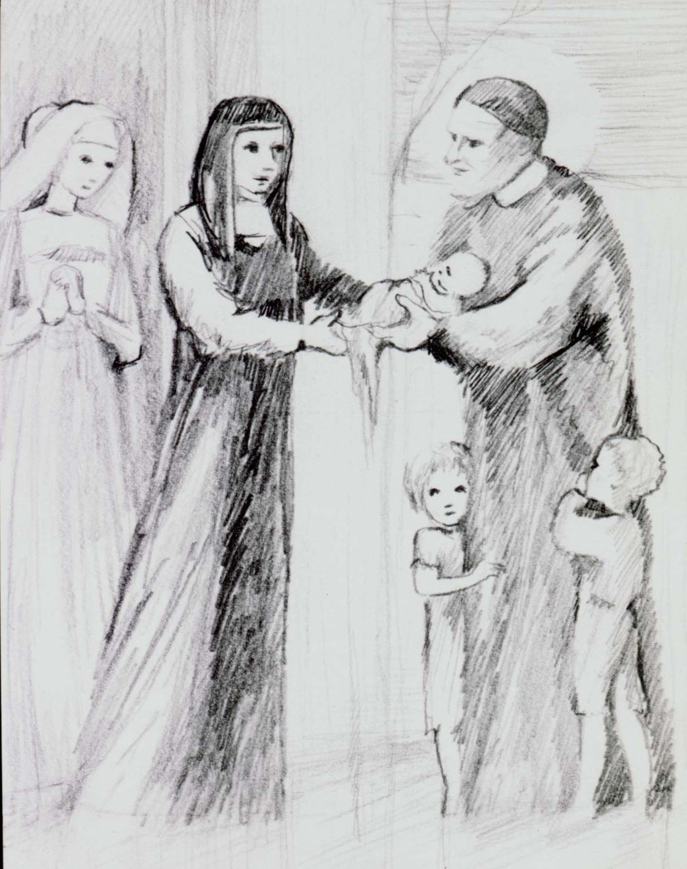 Vincent de Paul and Louise de Marillac, with Sister, foundlings