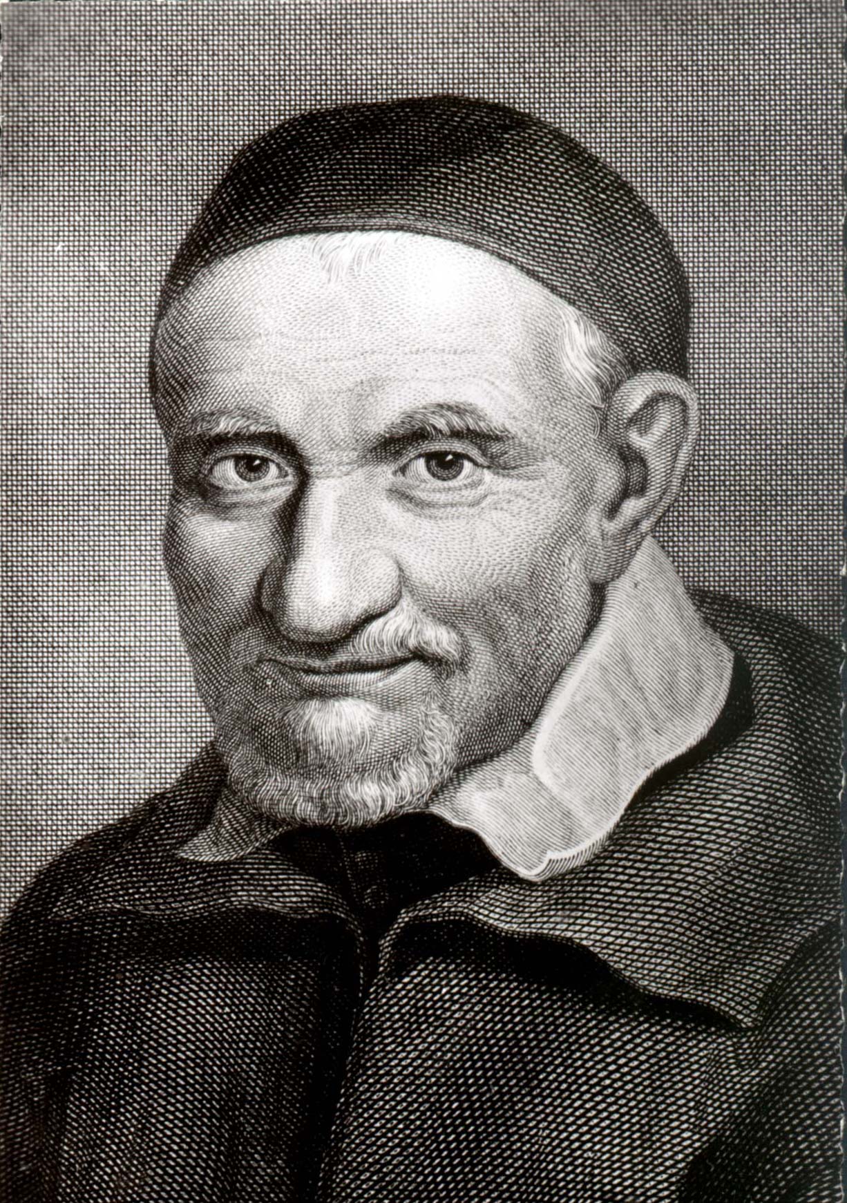 Engraving; Vincent de Paul portrait bust; at Vincentian motherhouse, Paris