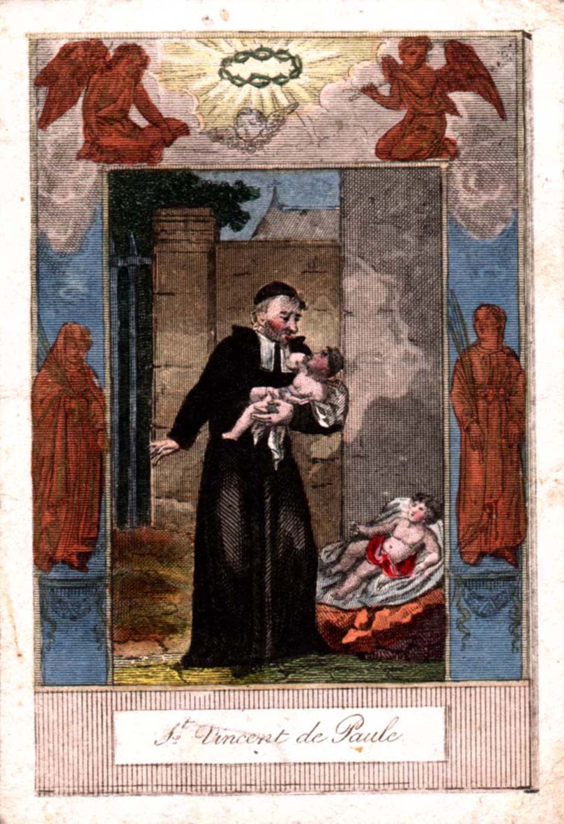 Vincent de Paul, collar of diocesan clergy; crown of thorns above; hand colored; original in Vincentian motherhouse, Paris