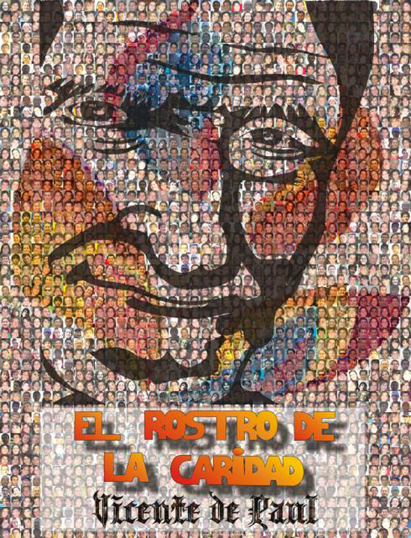 "The face of Charity. Vincent de Paul." Photo mosaic of children, making the face of Vincent de Paul. Location of original unknown.