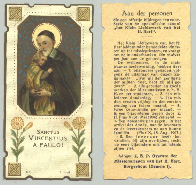 Card in support of the Work of the Sacred Heart, to build a minor seminary
