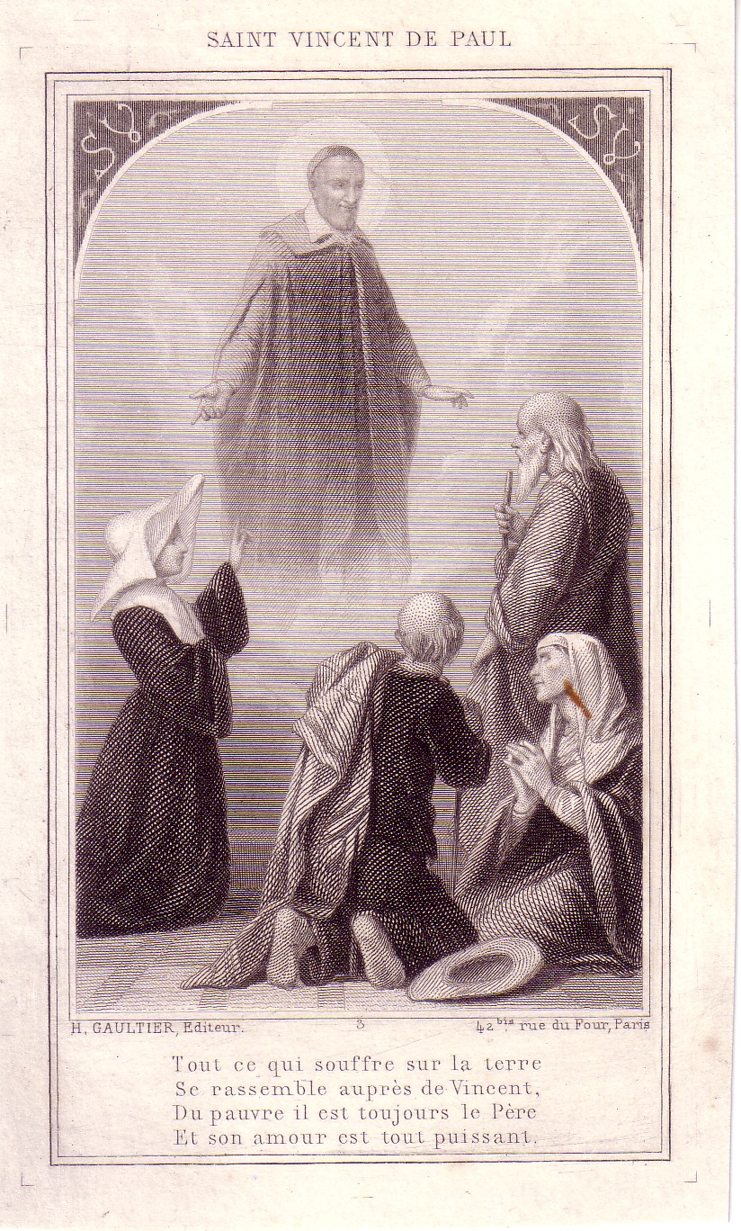 Rhymed text: Whatever is suffered on earth is gathered together with Vincent; he is always the father of the poor, and his love is all powerful.