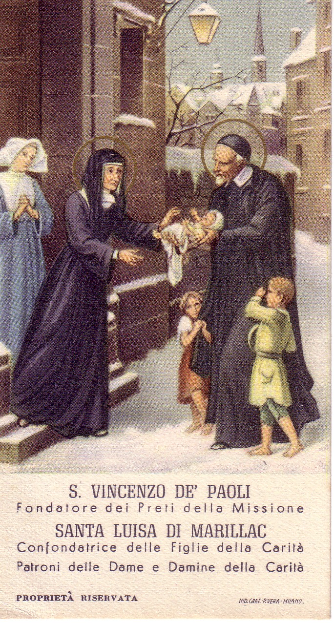 Text: SVdP, founder of the priests of the Mission; SLdM, cofounder of the Daughters of Charity; patrons of the Ladies and Girls of Charity