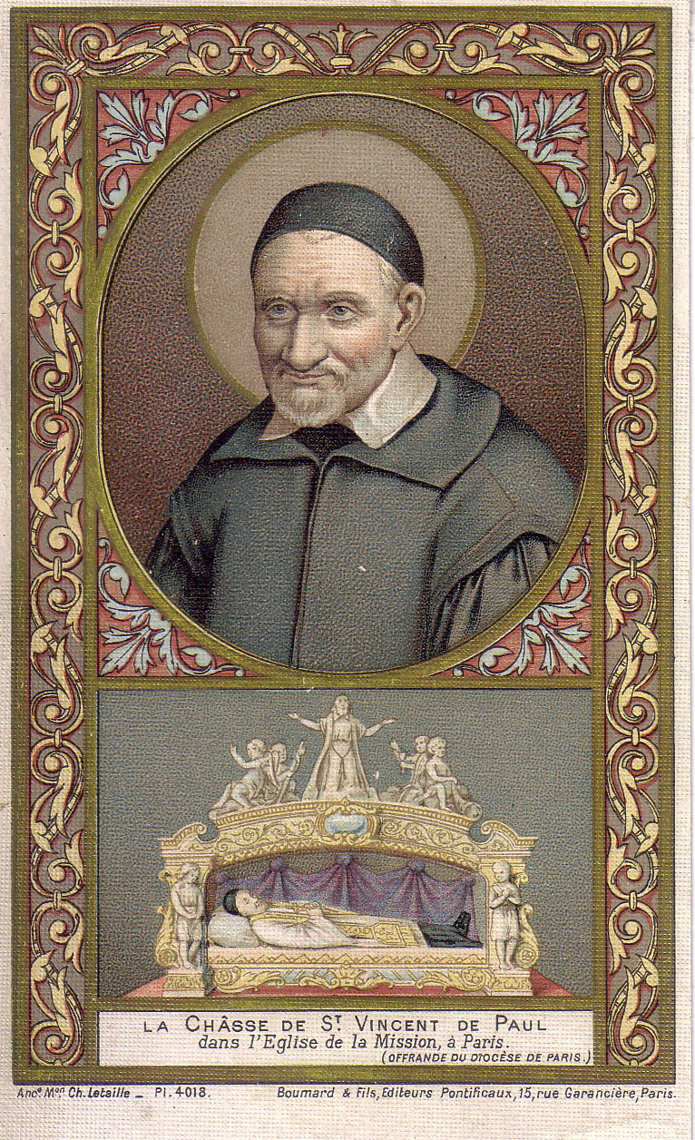 Vincent with "the shrine of St. VIncent de Paul in the CHurch of the Mission, Paris (donated by the diocese of Paris)"