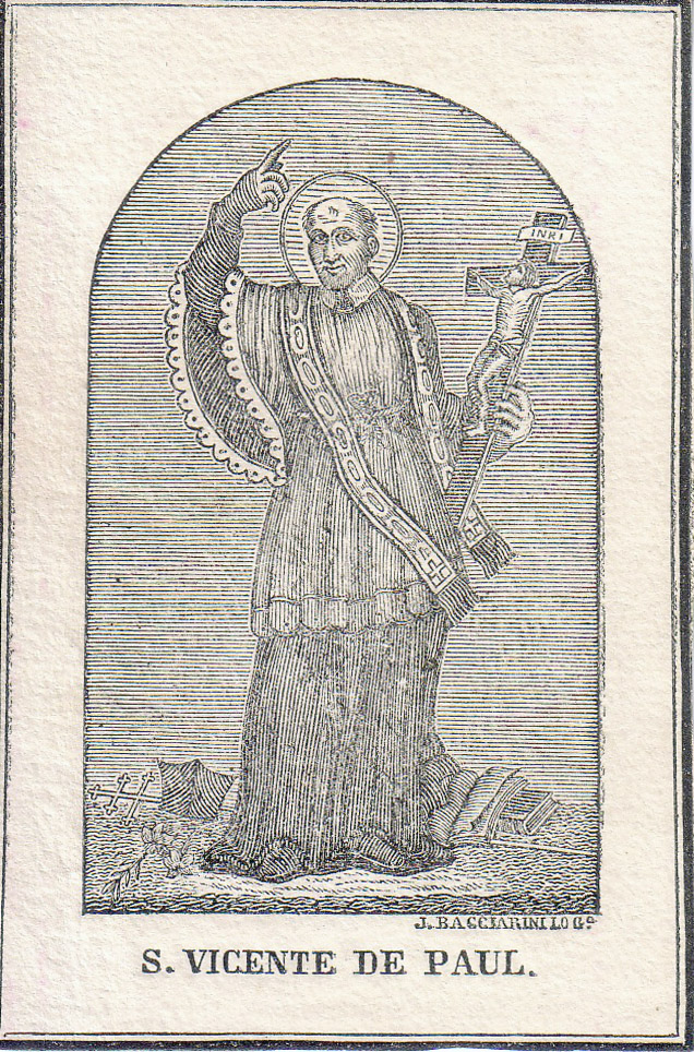 Based on Bracci statue in Vatican; books and Spanish biretta at his feet, with two-barred processional cross. Meaning?