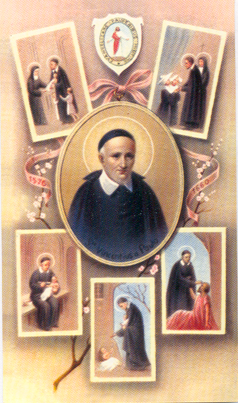 Vincent de Paul in oval; with Louise de Marillac, Sisters, infant, foundlings, poor; emblem and motto of the Congregation of the Mission