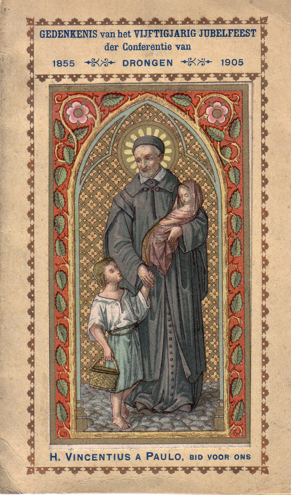 "Souvenir of the Fiftieth anniversary of the conference of Drongen" [Society of St. Vincent de Paul, Belgium] "St. Vincent de Paul, pray for us."