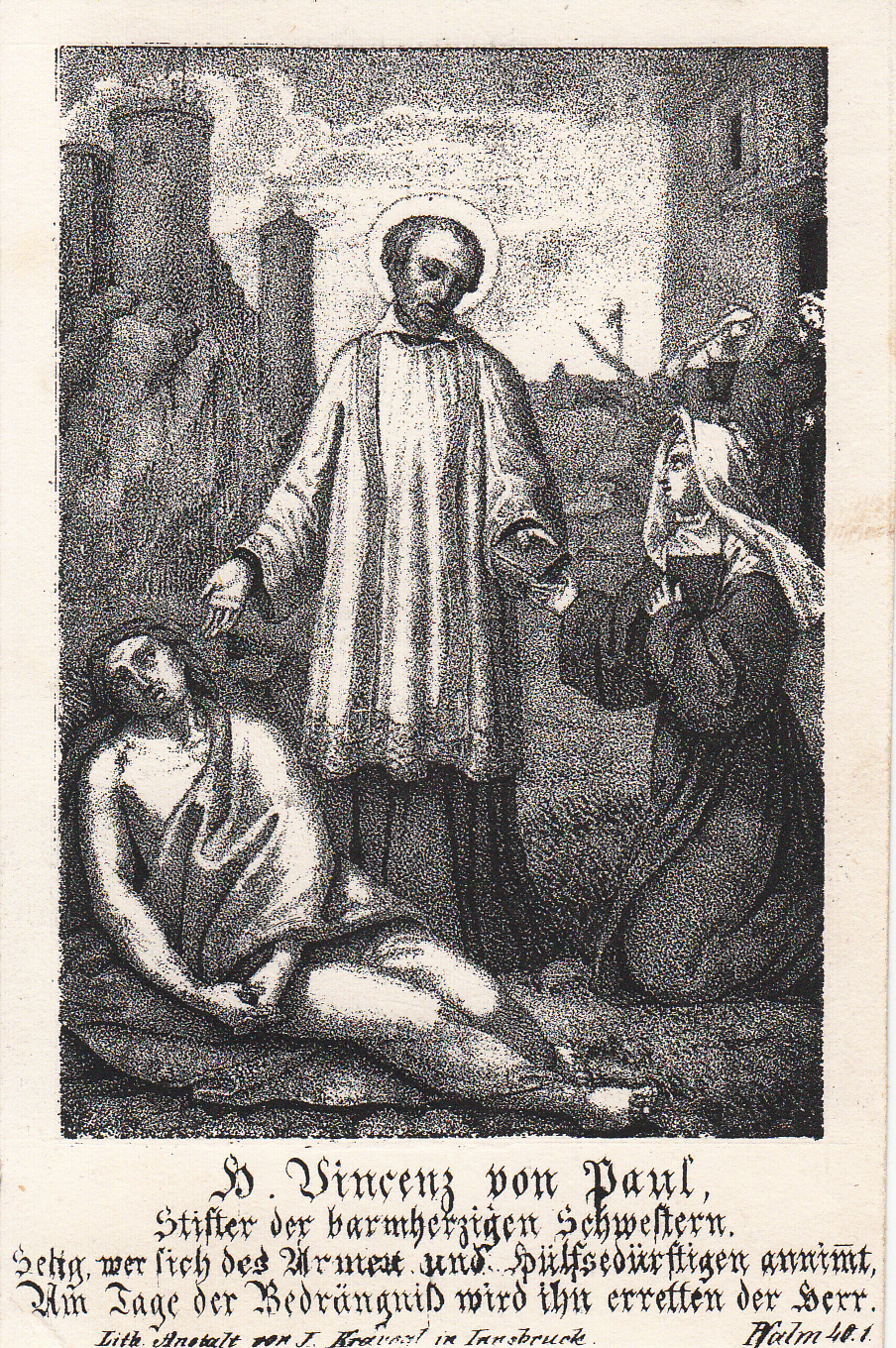 Text: Blessed is he who receives the poor and need; in the day of distress the Lord will rescue him. (Ps 40:1) Habit resembles the Strasbourg Sisters