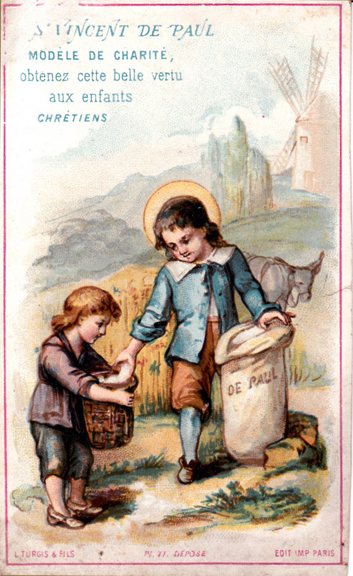 Text: SVdP, model of charity, grant this beautiful virtue to Christian children