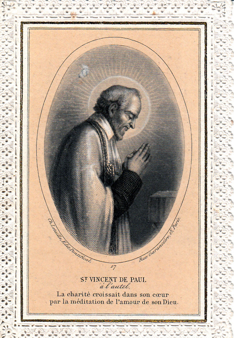 Text: SVdeP at the altar; Charity grew in his heart through meditation on the love of his God