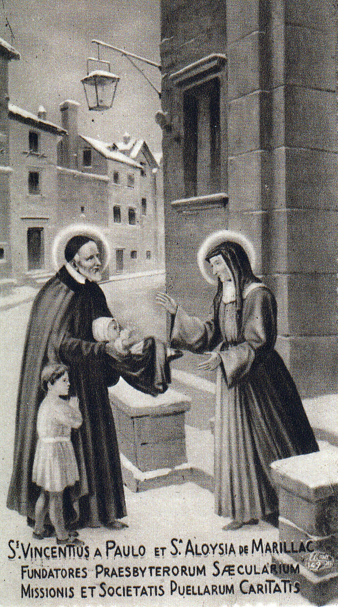 Latin text: SVdP and SLdM, founders of the Secular Priests of the Mission and the Company of the Daughters of Charity