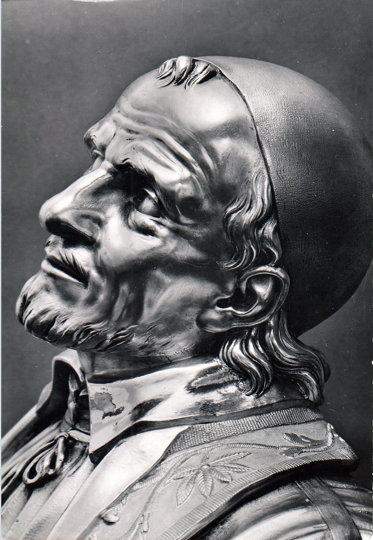 Silver statue, head, in CM mother house chapel, detail of the casket statuary