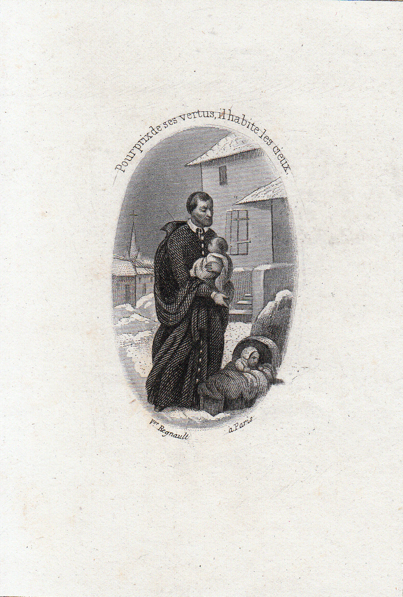 Text: For the reward of his virtues, he dwells in heaven.