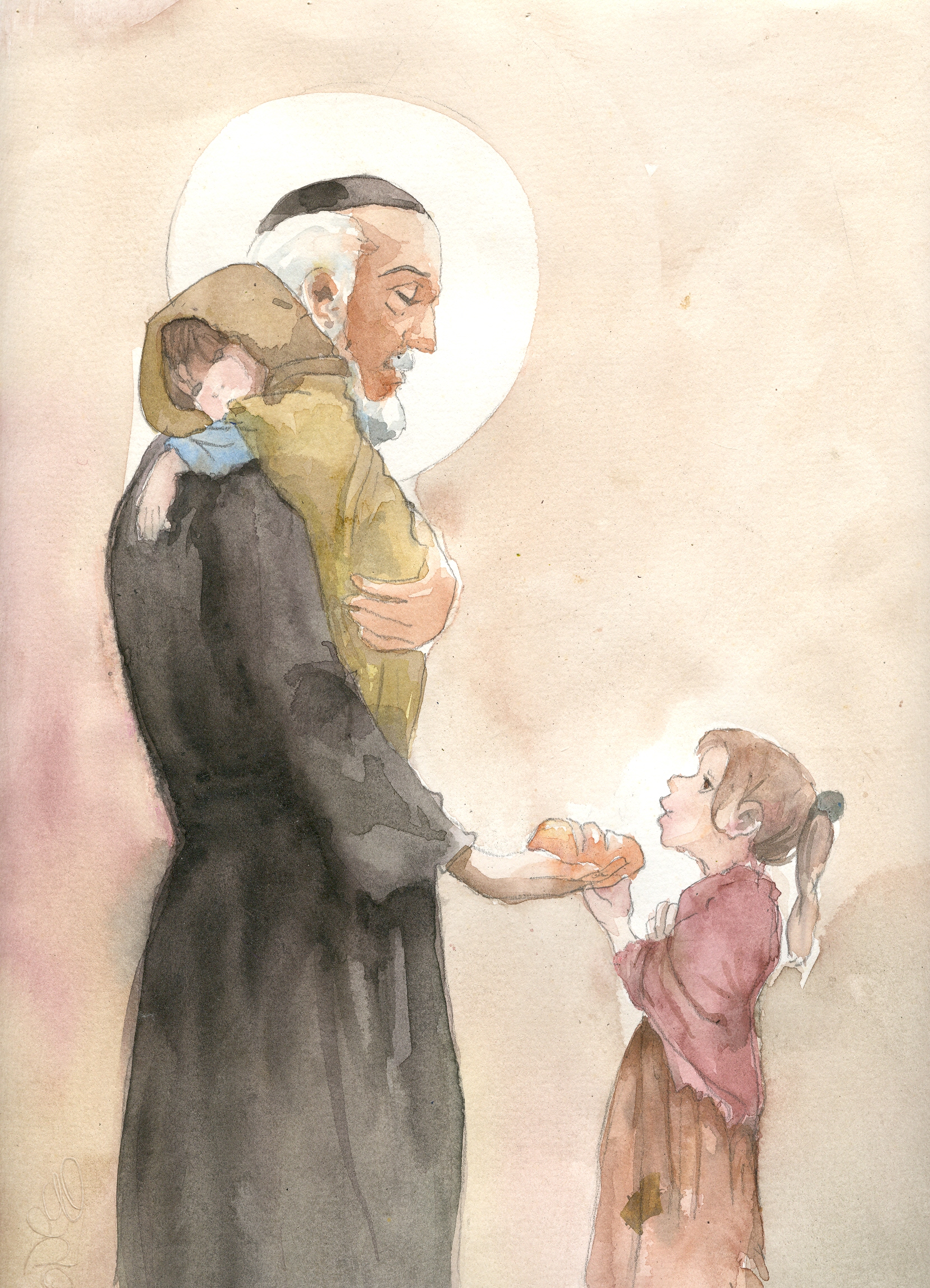 Vincent with bread, children, watercolor