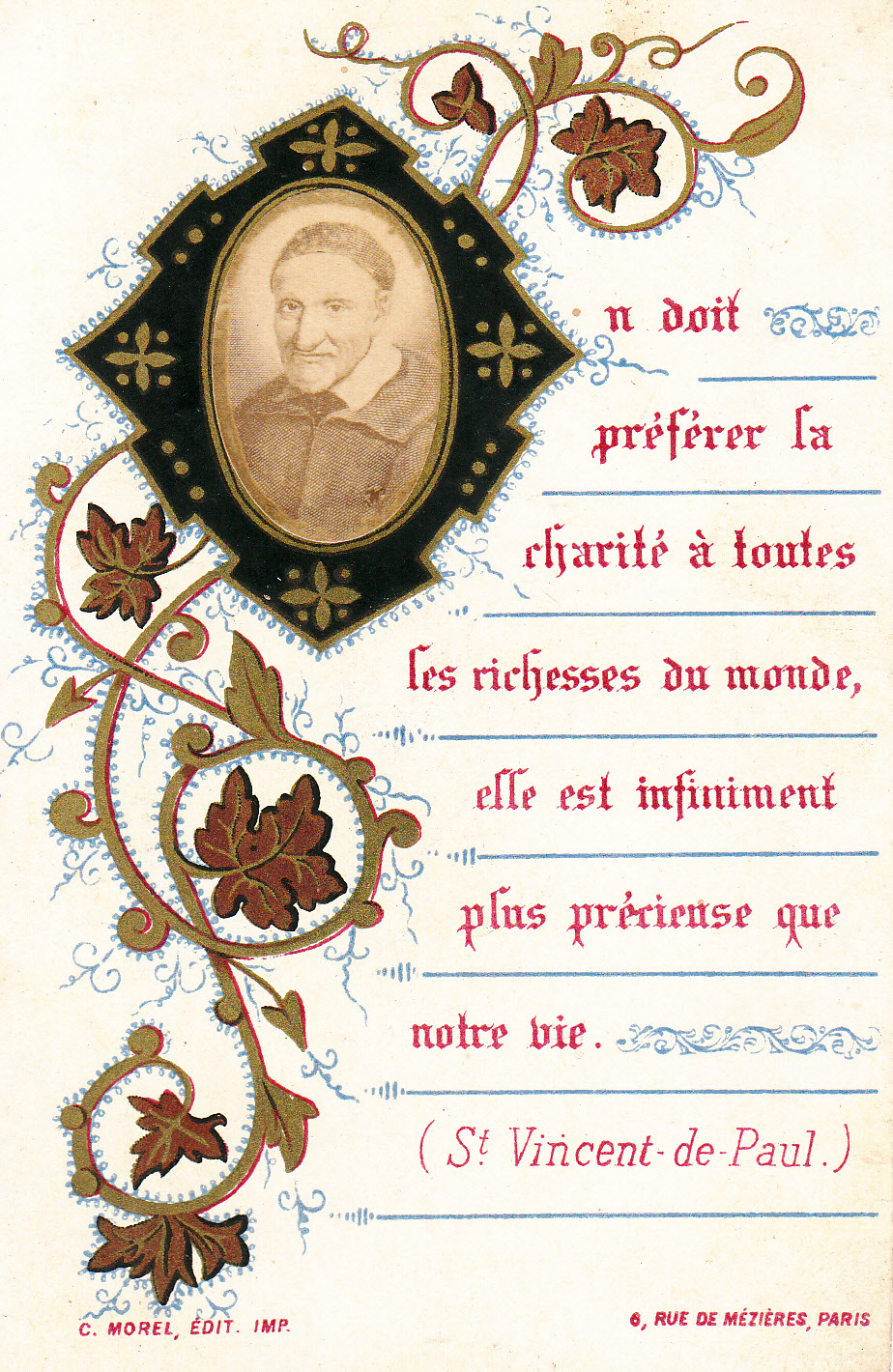 Text: We should prefer charity to all the world's riches; it is infinitely more precious than our life.