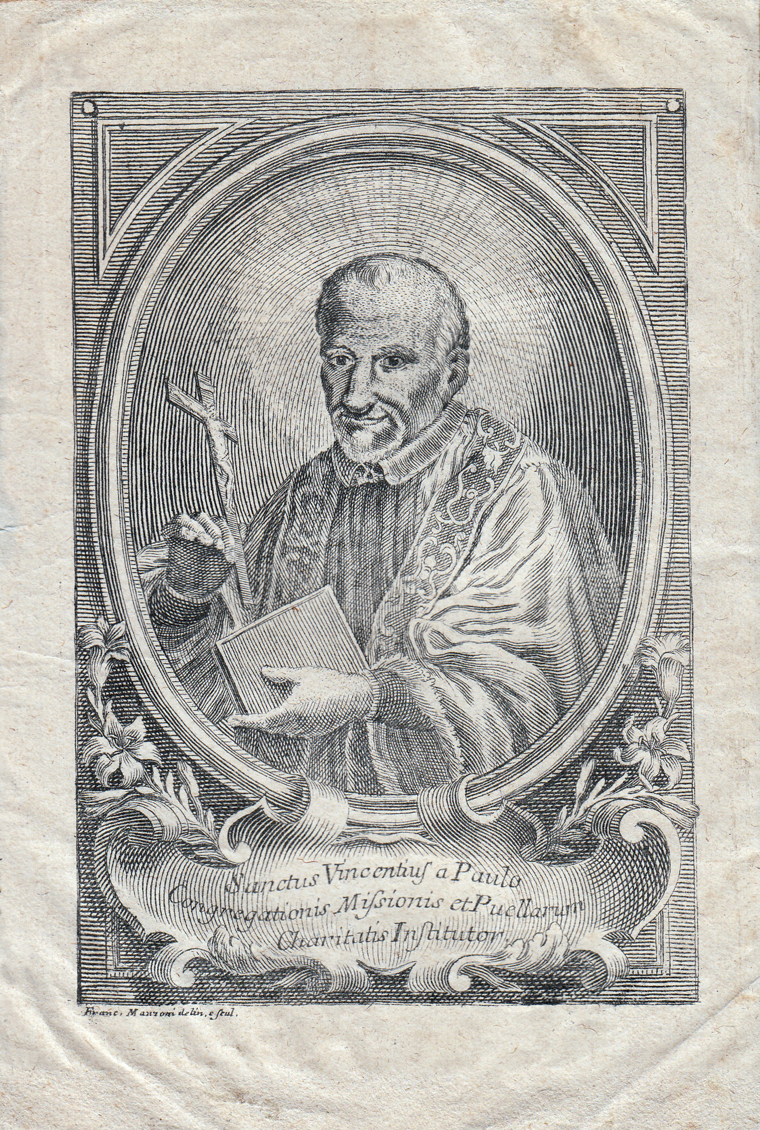 Text: SVdP, founder of the Congregation of the Mission and the Daughters of Charity.