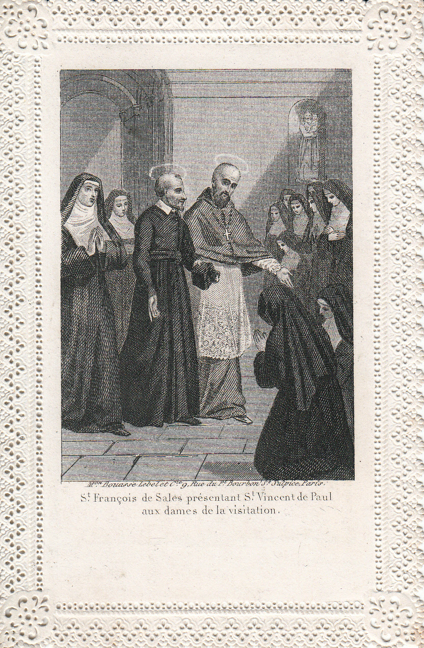 Text: St. Francis de Sales presenting SVdP to the Ladies of the Visitation