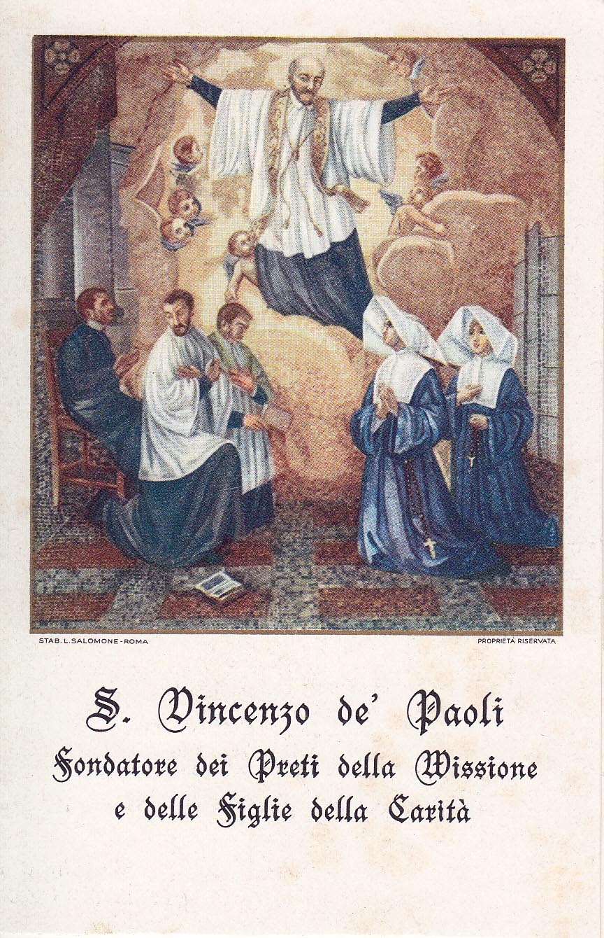 Text: SVdP, founder of the priests of the Mission and the Daughters of Charity
