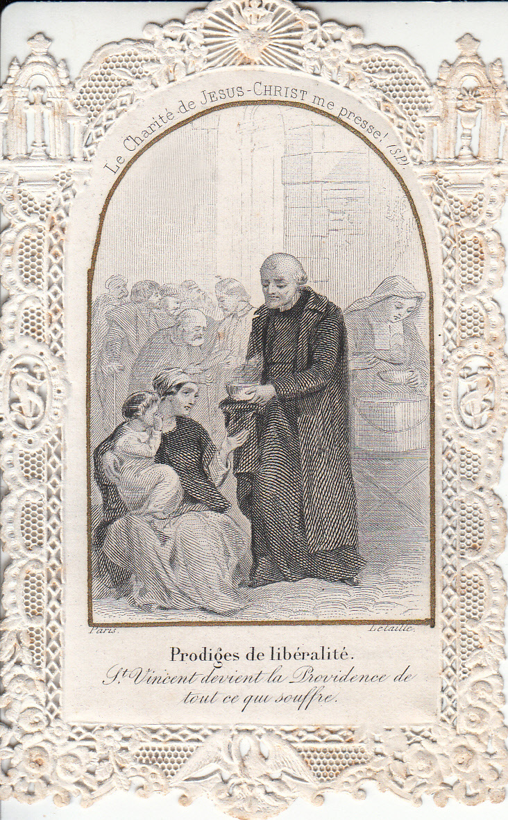 Text above: The charity of Christ urges me on; below: miracles of generosity. SV becomes the Providence of everyone who suffers