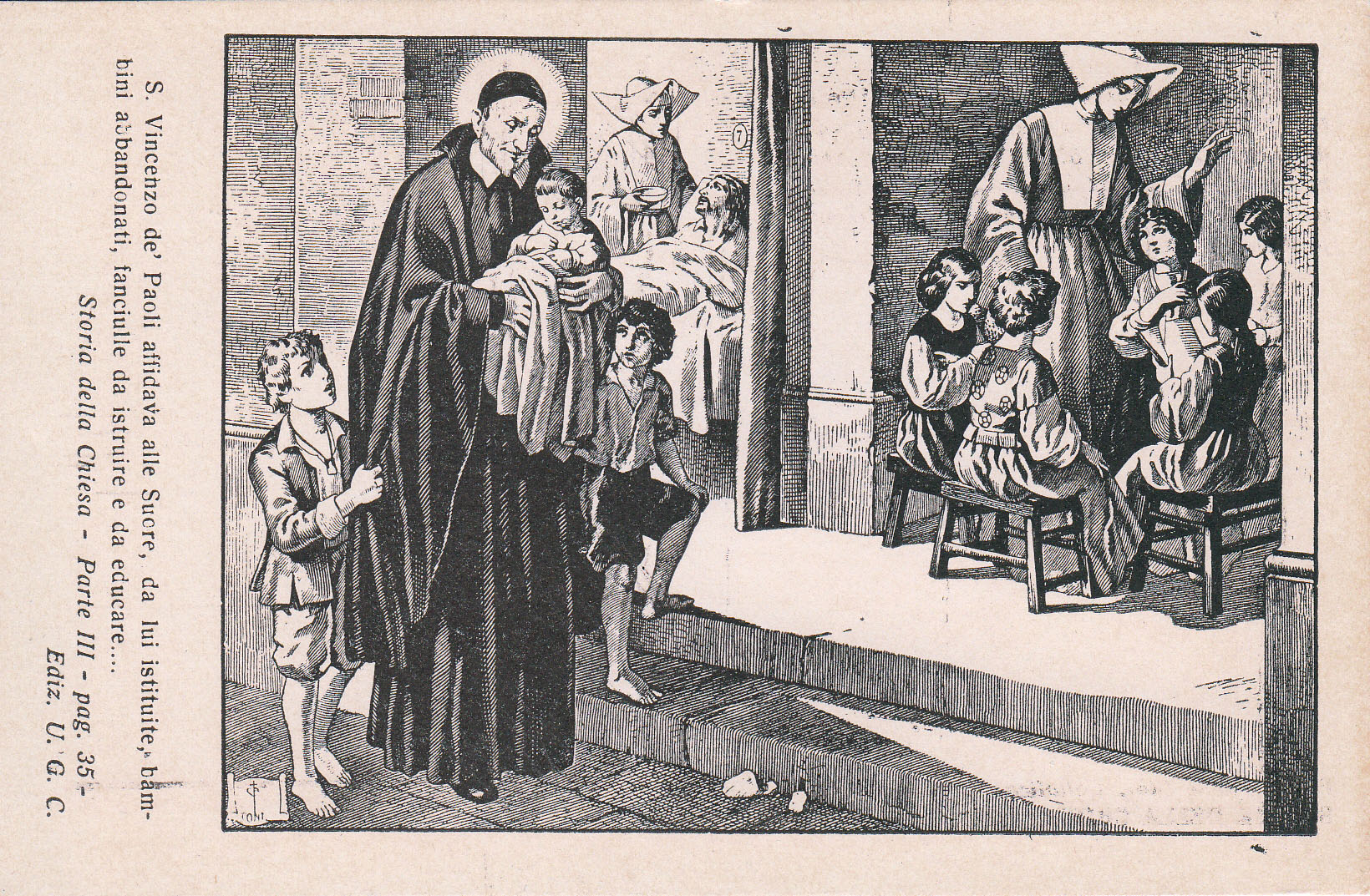 Text: SVdP confides to the Sisters founded by him abandoned children, girls to be instructed and educated.
