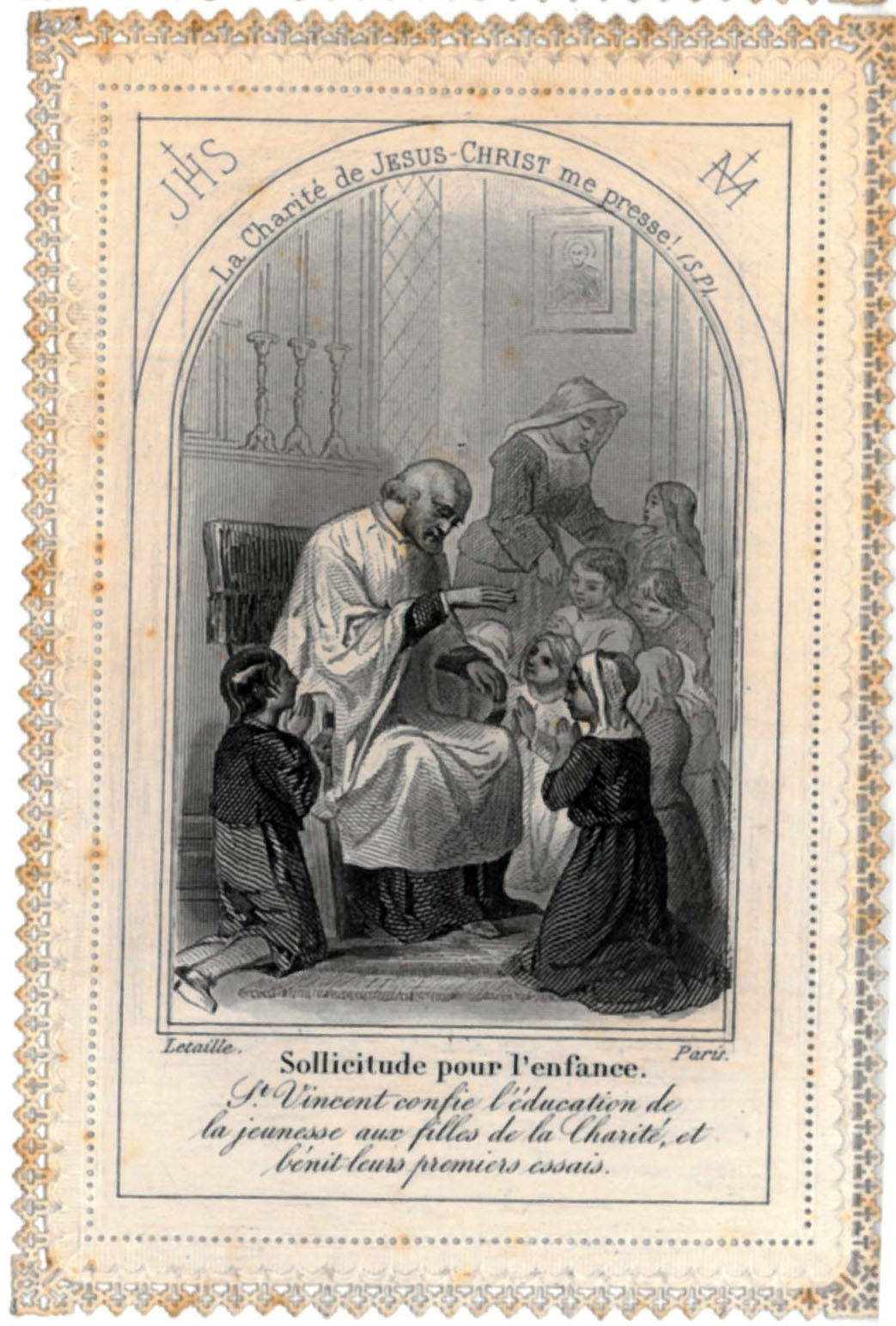 Text: SV confides the education of youth to the Daughters of Charity, and he blesses their first efforts