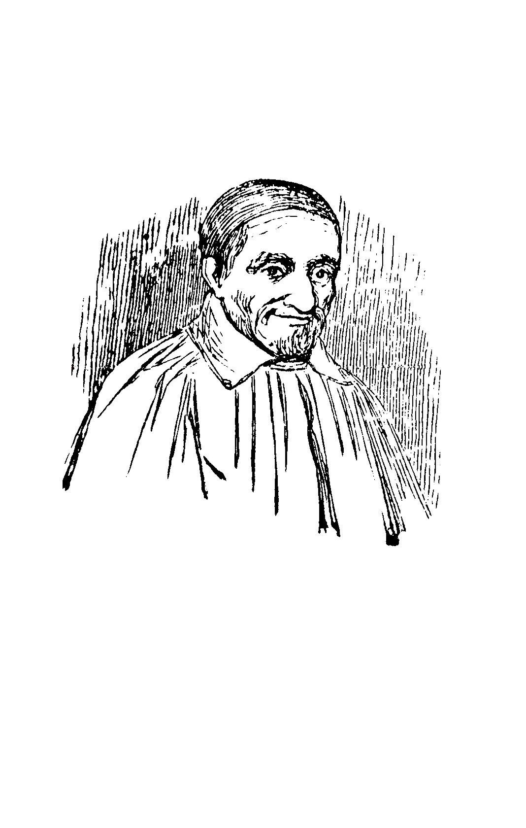 Vincent de Paul, line drawing bust, smiling