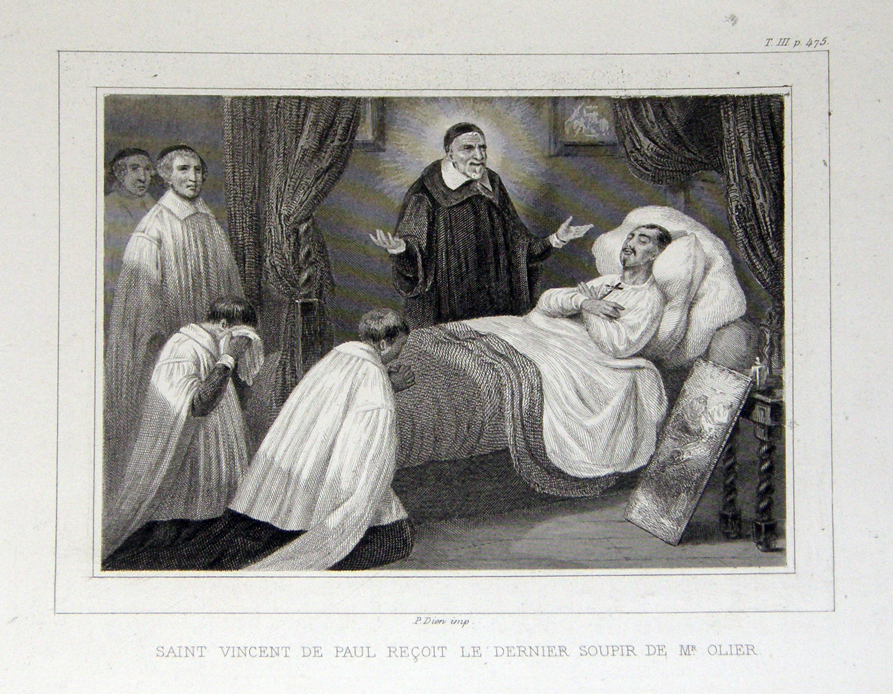 Vincent de Paul at deathbed of Jean Jacques Olier, Paris; original in CM archives, Paris