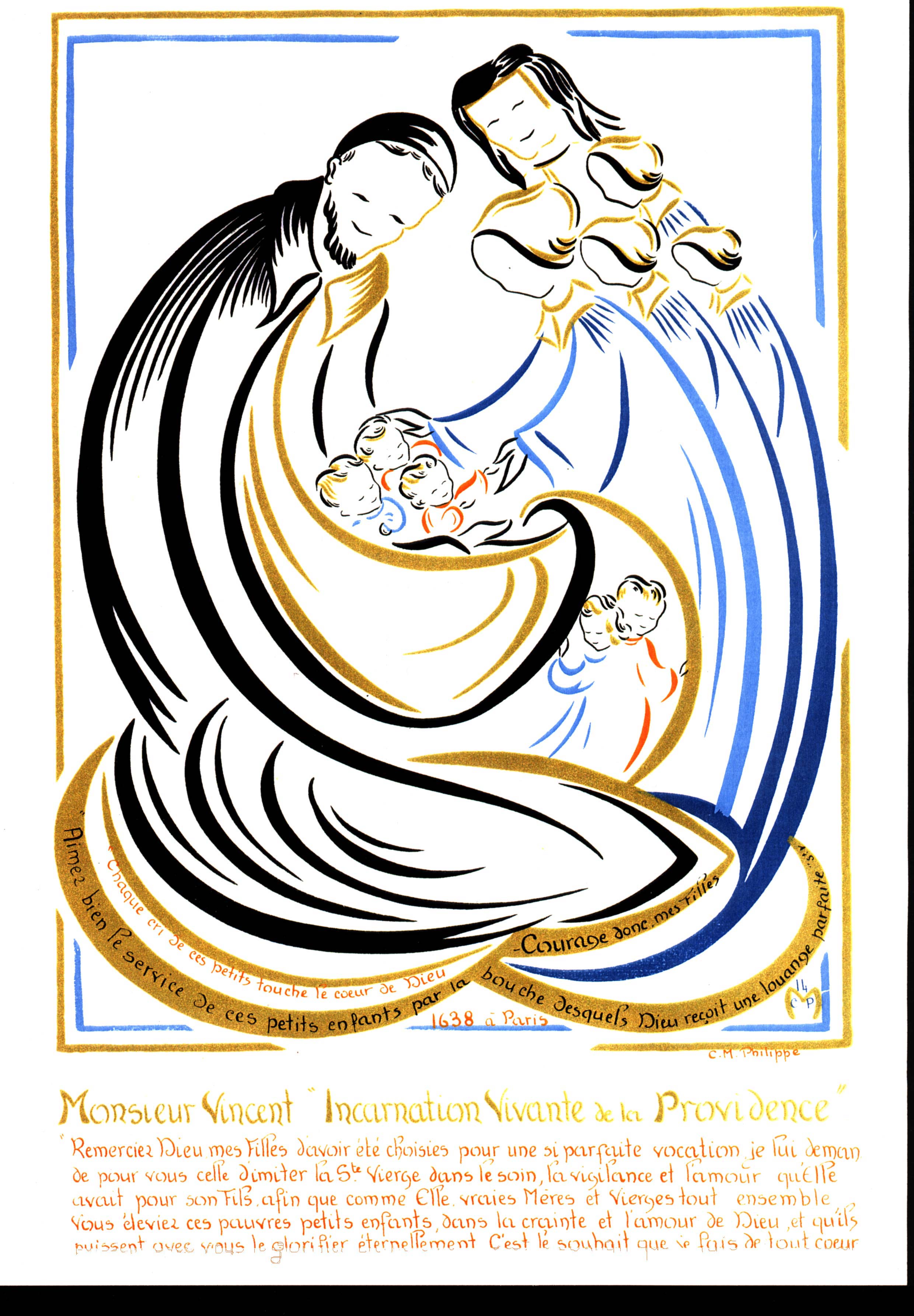 Vincent de Paul and Louise de Marillac, with Daughters of Charity, foundlings; drawings by C.M. Philippe; may be subject to copyright