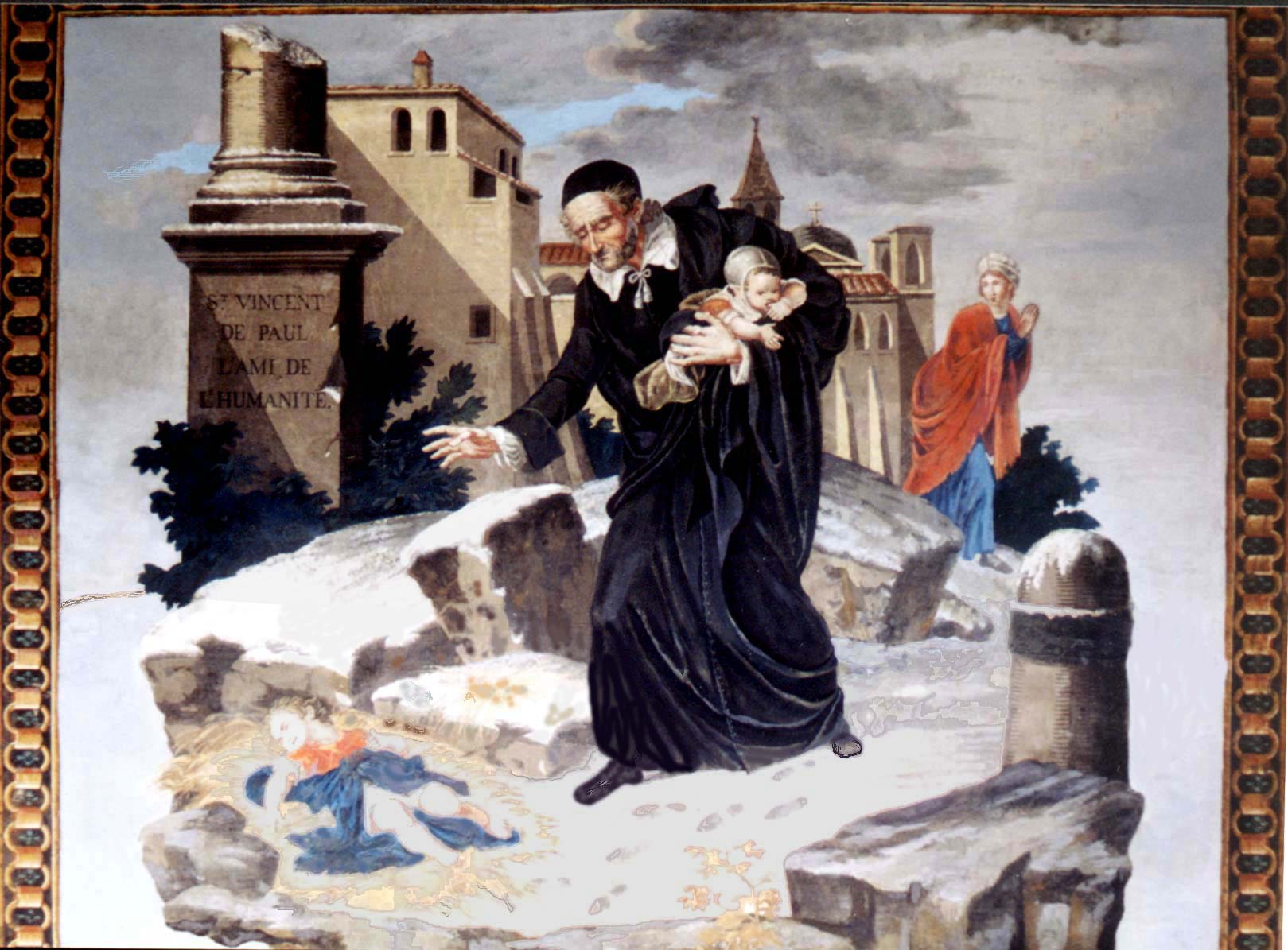 Vincent de Paul with foundlings in snow