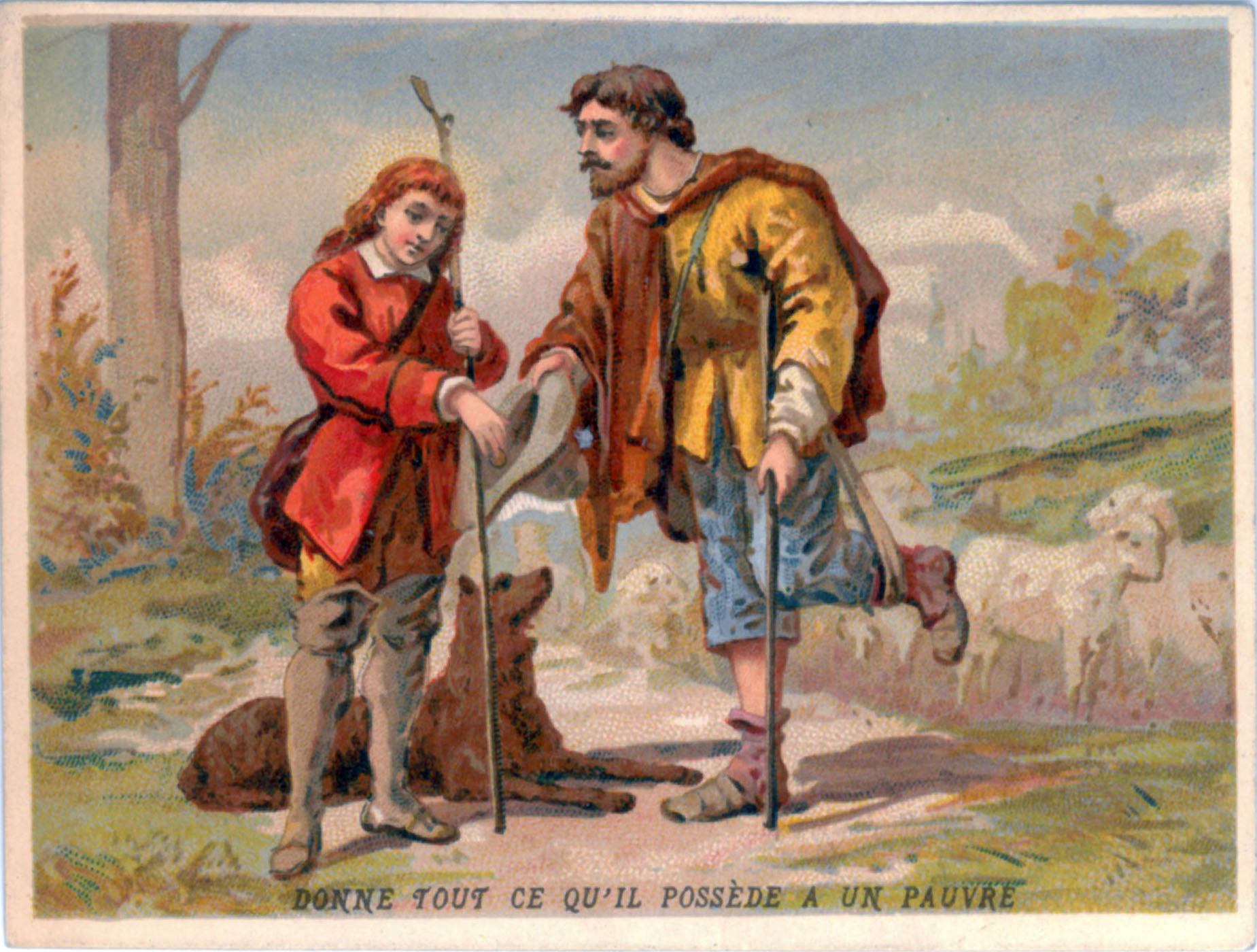 Young Vincent gives alms to a poor man