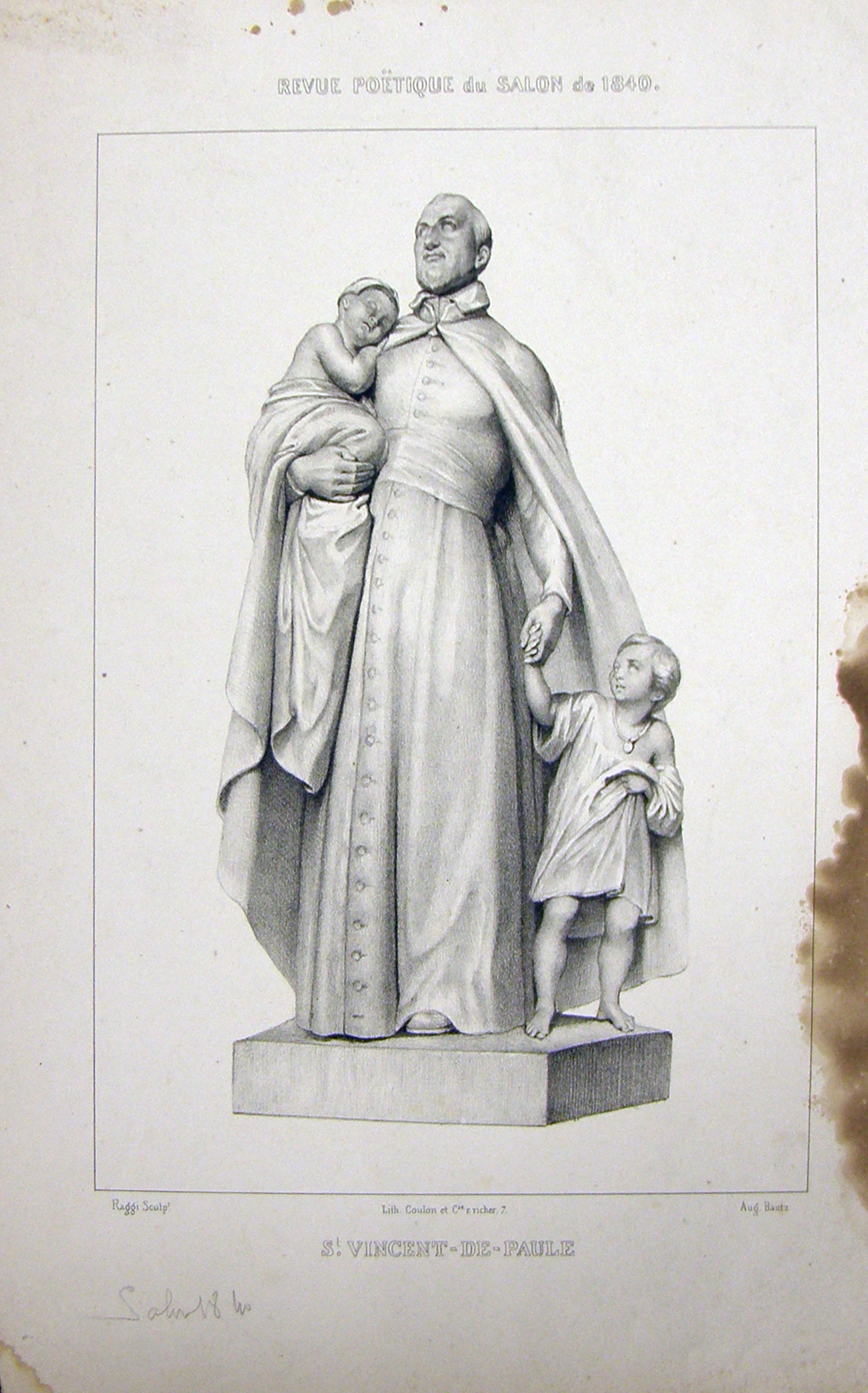 Statue by Raggi, now in Madeleine, Paris; Original engraving in archives, CM mother house, Paris