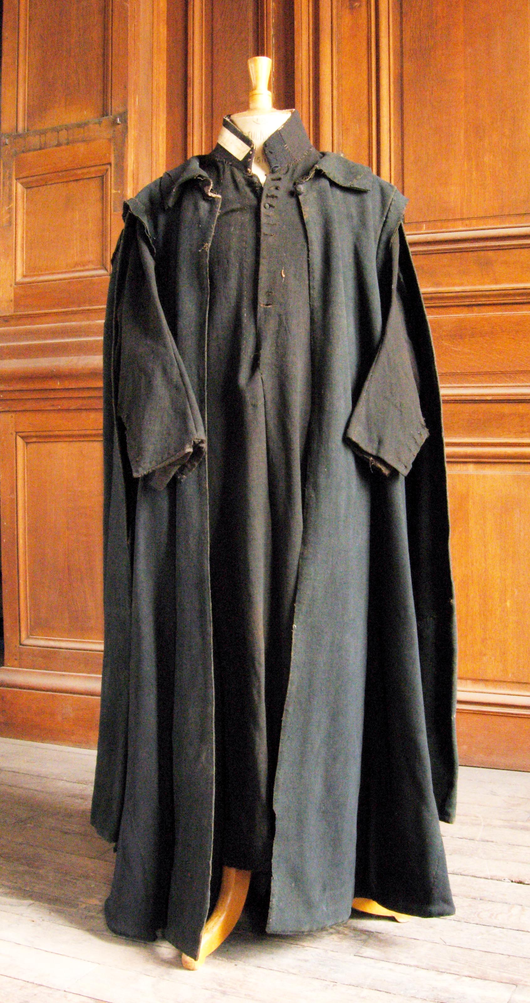 Cassock sleeves shown through opening of mantle; photo courtesy of S. Scardina Weight of cassock, 2 kg (4.4'); Homespun material, home tailored Weight of mantle: 5 kg (11'); more when wet