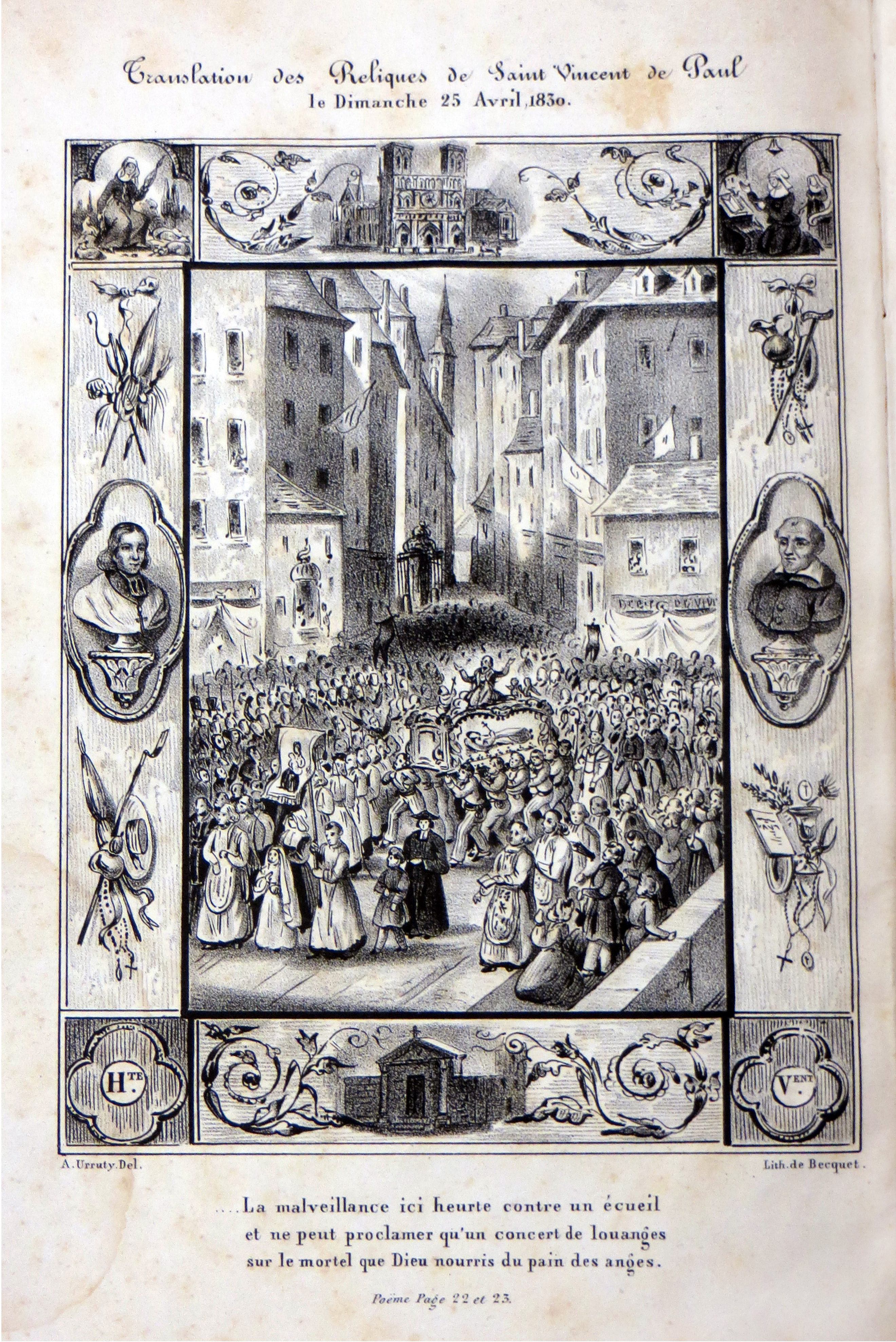Frontispiece of Translation des reliques de SVdP le dimanche 25 avril 1830 (Paris, 1838); a poem commemorating the event