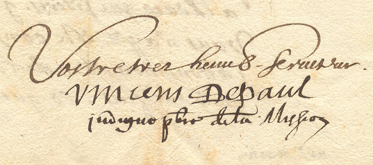 Signature only; Vincens Depaul, indigne pbtr dela Mission