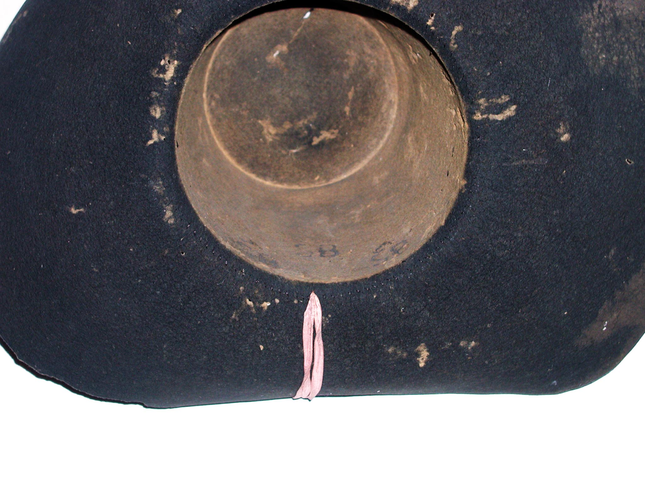 Maker's marks inside the crown: SB with triangle above; black felt; two pieces (crown and brim)