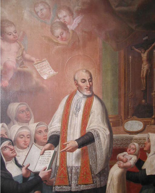 Detail from oil painting, Vincent de Paul distributes rules to Louise de Marillac; original in Daughters of Charity provincial house, Zaragoza