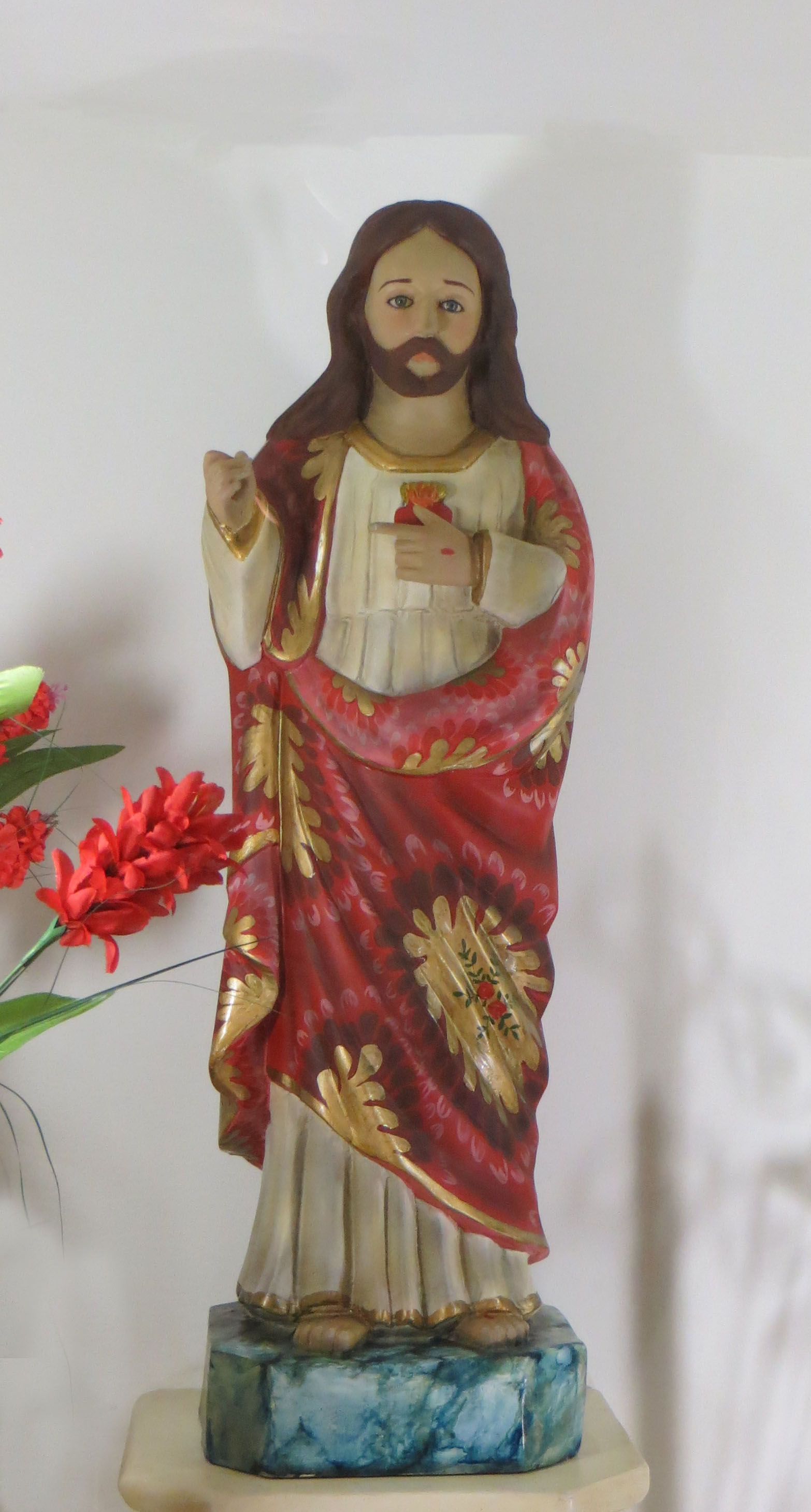 Sacred Heart of Jesus statue, similar gesture, missing crucifix