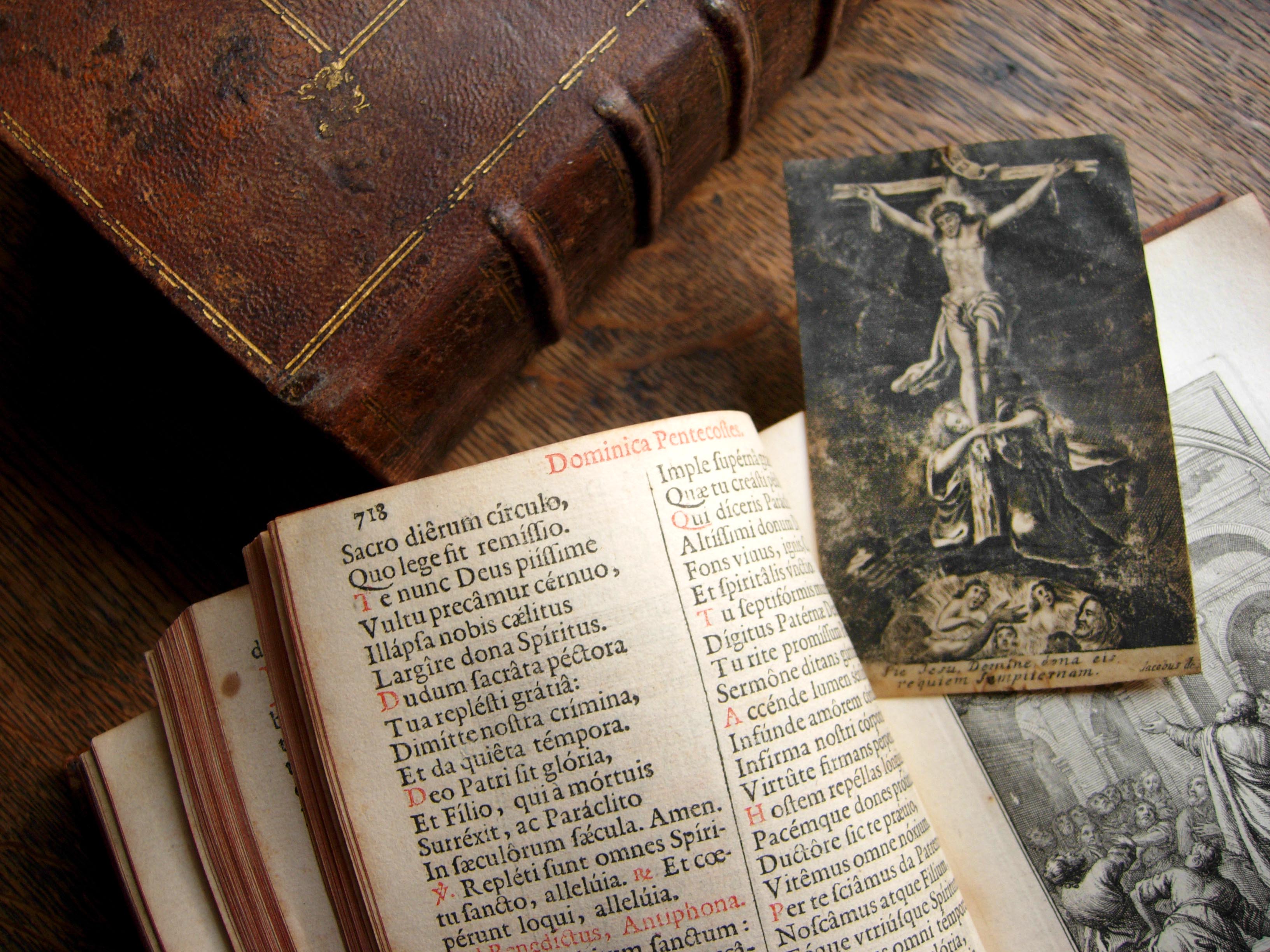 Two volume breviary used by St. Vincent; holy card of Jesus crucified, souls in purgatory