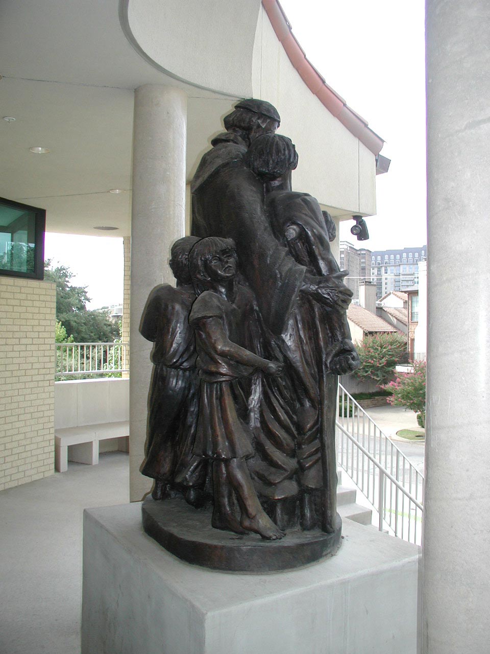 Bronze group, Vincent de Paul and poor persons; right, rear view. Original in Dallas