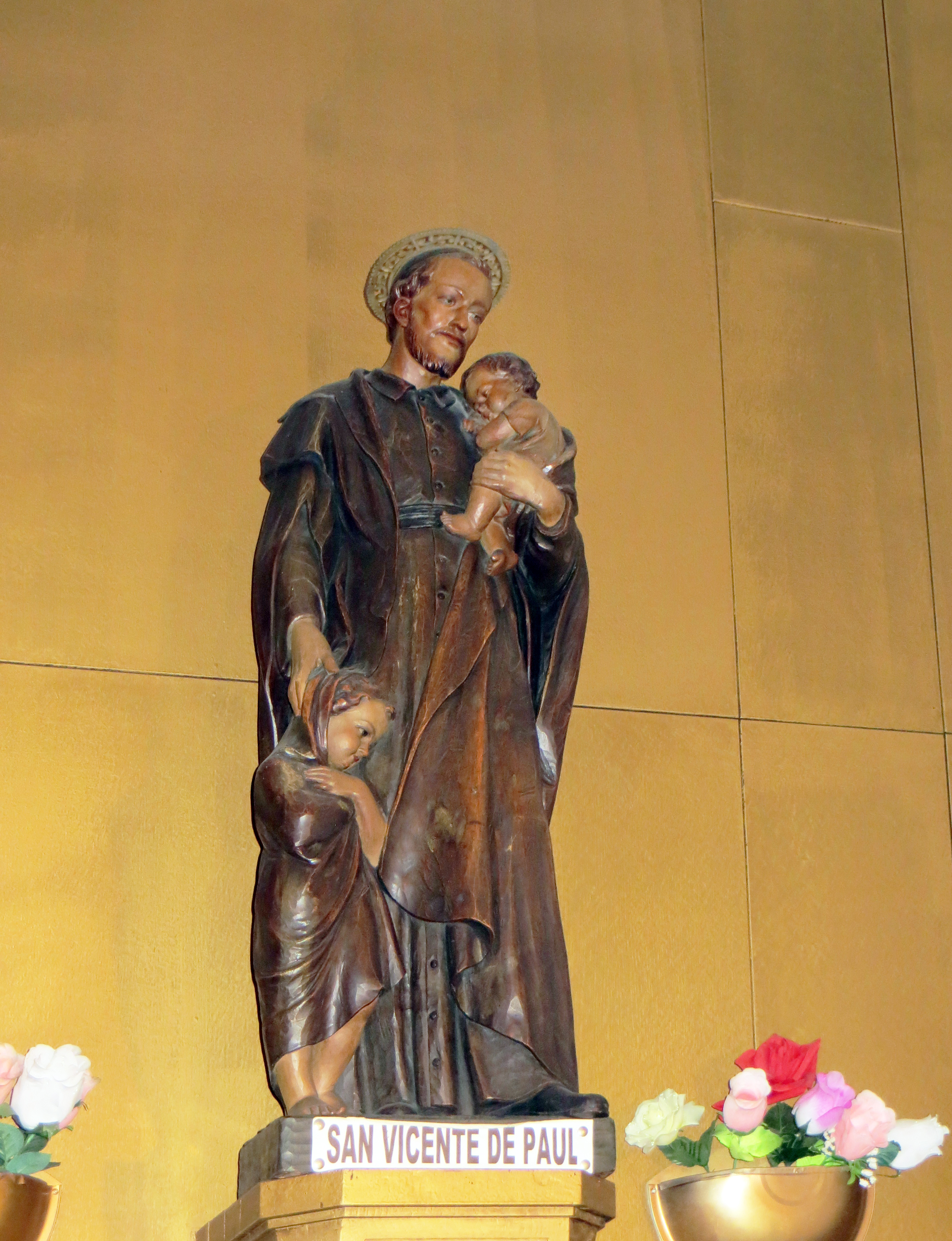 VdP with two children, Spanish style (metal halo)