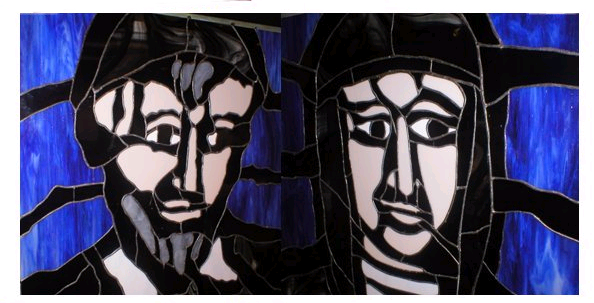 Heads of Vincent de Paul and Louise de Marillac; art glass base. Artist: Bro. Timothy Opferman, CM; Original in Chicago; based on work by Sr. Sharon Horace, DC
