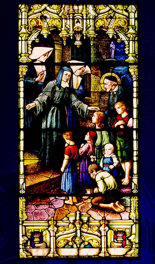 Vincent de Paul presents six orphan children to Louise de Marillac and two Sisters. Original in St. Stephen's church, New Orleans.