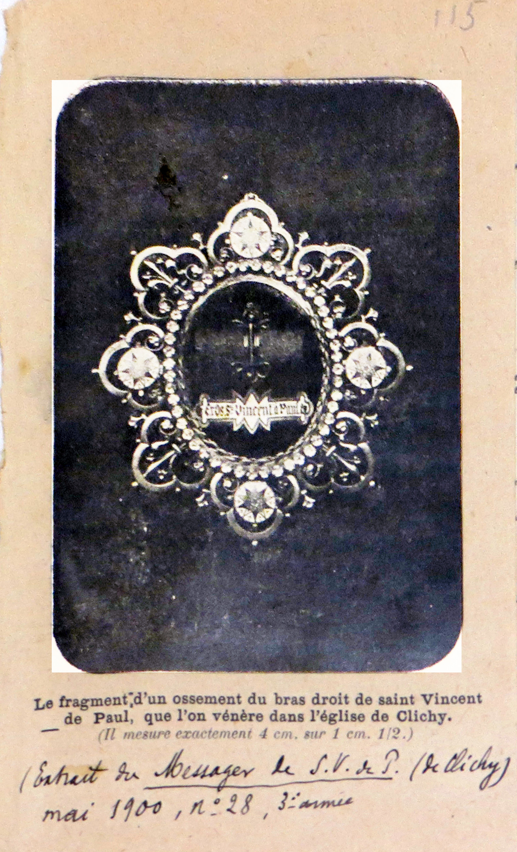 Holy card with photo of bone relic