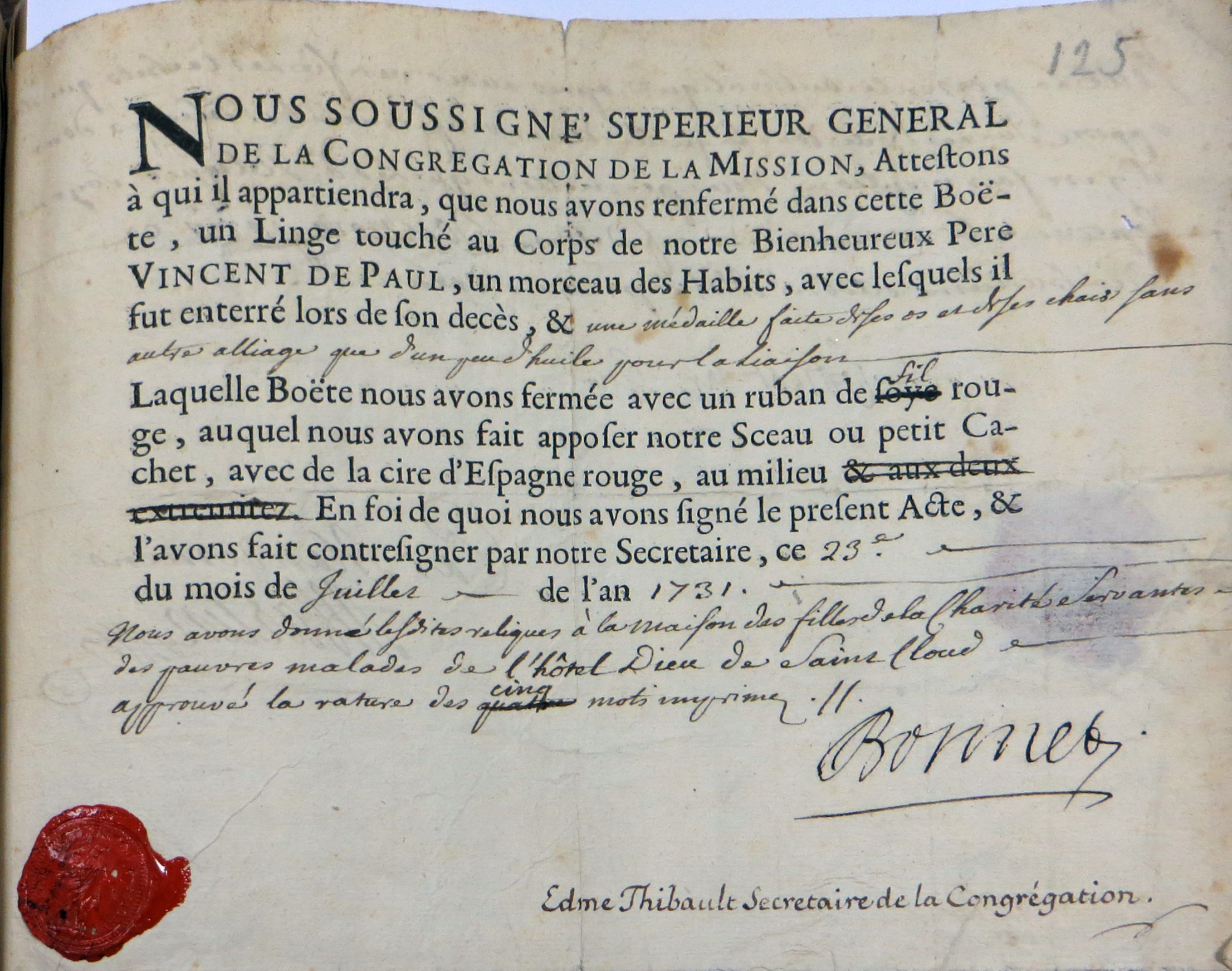 Round medallion made of bone and flesh mixed with oil, for Daughters of Charity in the hospital of Saint-Cloud