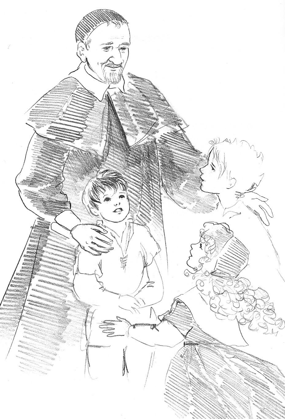 Vincent de Paul with three children