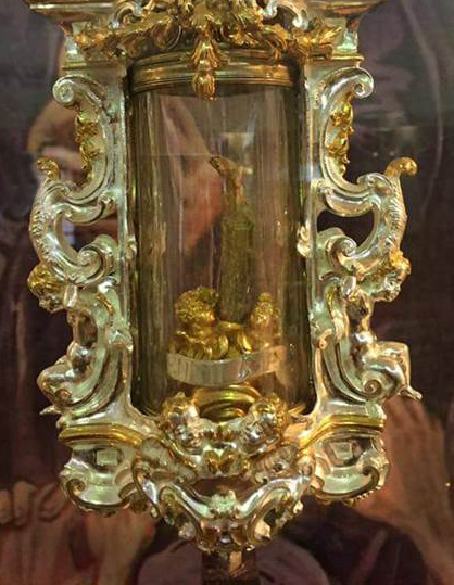 Taken against a background of a painting